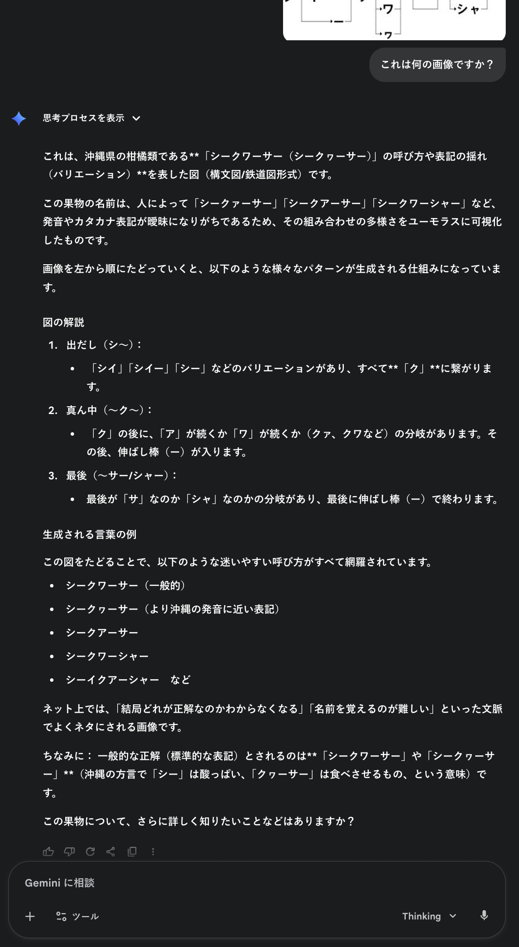 3.0が来たので先日のシークヮーサー問題を試してみたらヒントなし一発正解、すごい