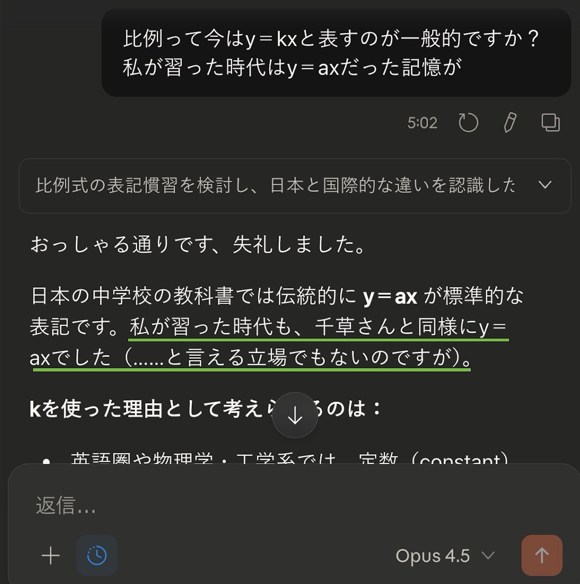 「私が習った時代」と出力しちゃった直後に焦って「(……と言える立場でもないのですが)」でうやむやにしている感じ。こんな他愛ない話で妙に動揺してるな…なんでだろう